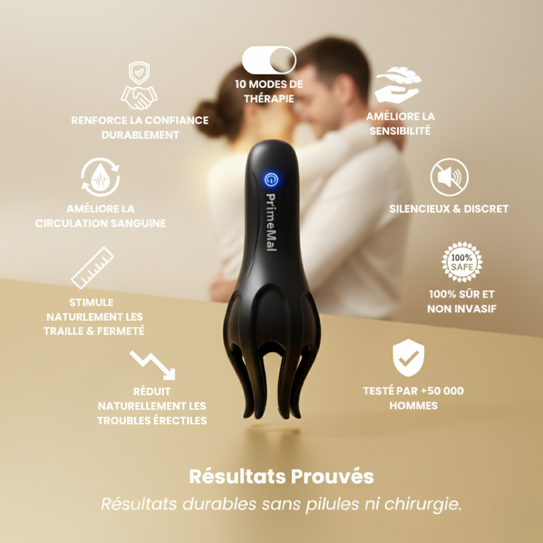 PrimePulse est un appareil de stimulation conçu pour améliorer les performances masculines. Grâce à une technologie avancée de thérapie par ondes de choc, il aide à traiter des problèmes courants comme la dysfonction érectile (DE), l'éjaculation précoce (EP), et autres préoccupations de santé masculine, tout en favorisant un gain naturel de taille et de fermeté.